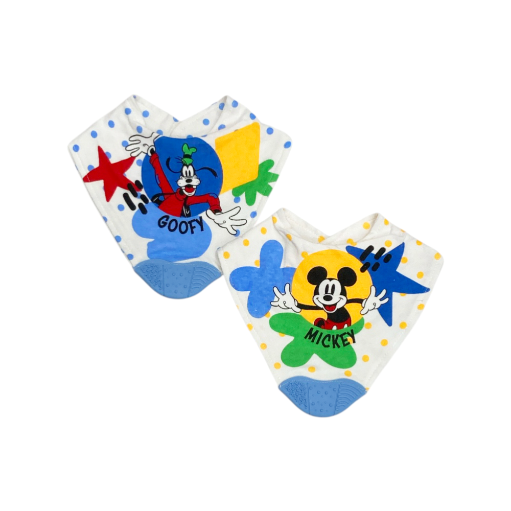 set 2 pezzi bavaglini in cotone jersey doppiato con punta in PVC, chiusura con bottoncino a pressione, ref. 9610/1