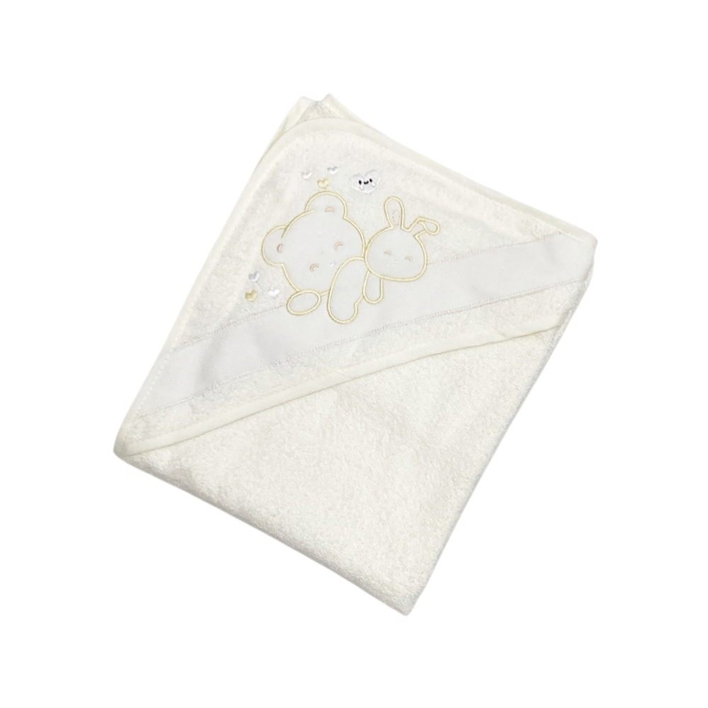 accappatoio neonato/a in spugna, senza maniche con cappuccio, ricamo animaletti, ref. QC202/5