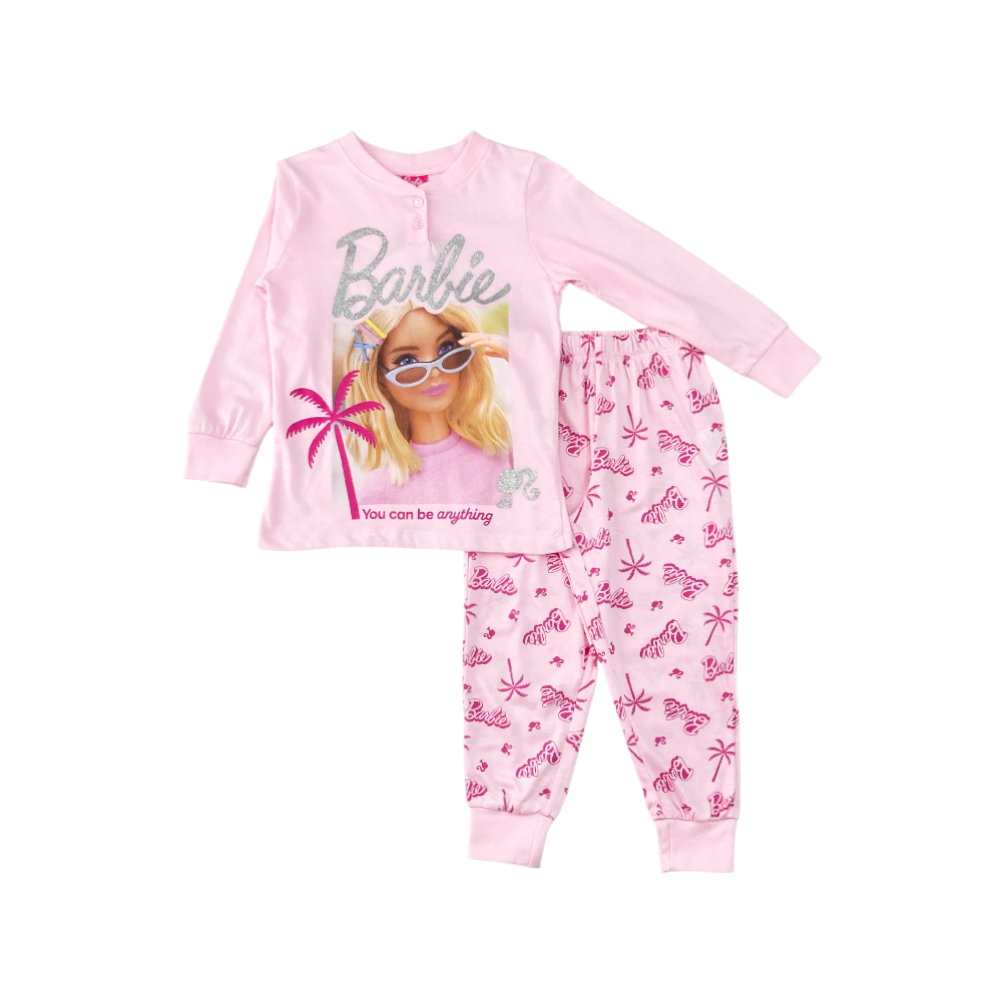 pigiama bambina in cotone jersey, con stampa Barbie e apertura con 2 bottoncini, sotto stampato, ref. C7385