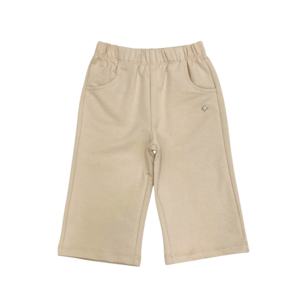completo bambina in felpa leggera, felpa girocollo con brillantini sul davanti, apertura sulla spalla nella tg. 12/18 mesi, panta-tuta modello palazzo tutto elastico in vita con tasche frontali, ref. 1304-M1