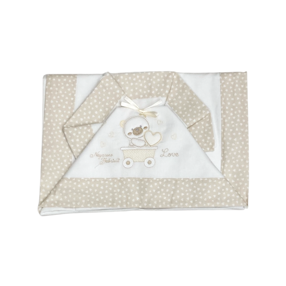 coordinato lenzuolini 3 pezzi cotone, con ricamo e fascia in contrasto, ref. NG101 dis. 28