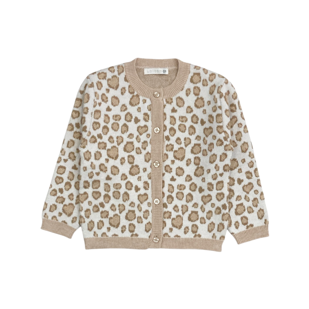 cardigan bambina in maglia fantasia maculato lurex, abbottonatura girocollo, ref. W-7132