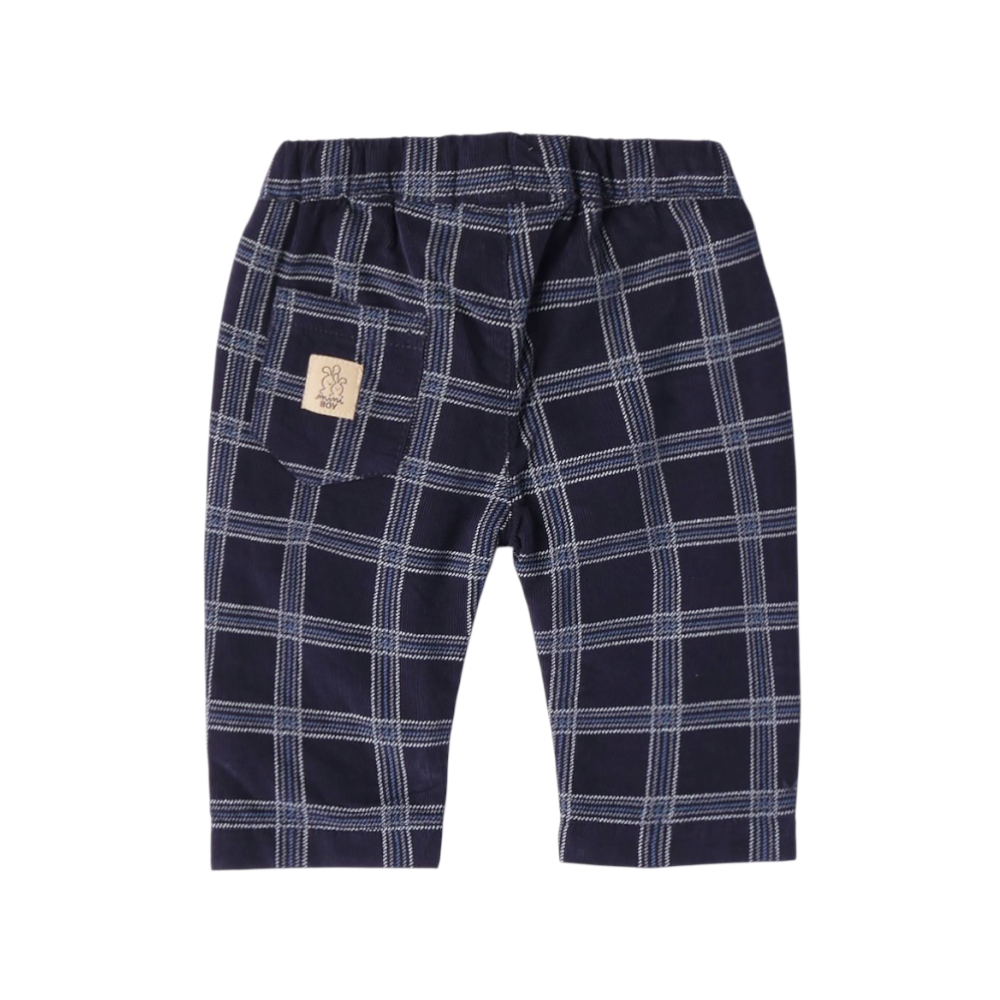 pantaloni bambino in morbido tessuto a quadri foderato, tutto elastico in vita con coulisse, taschina sul retro, ref. 4F068