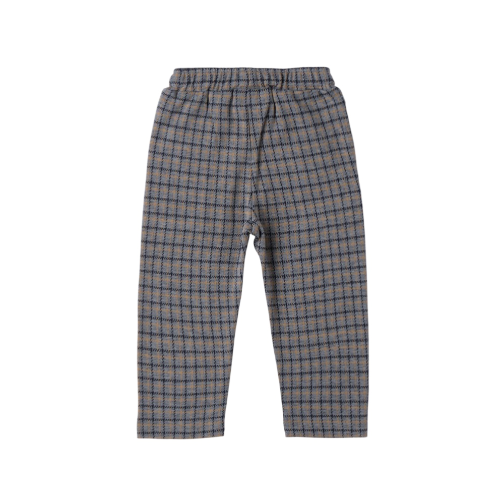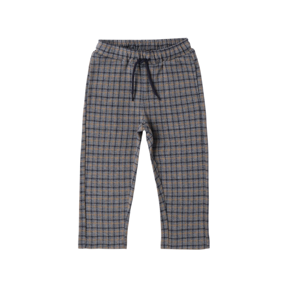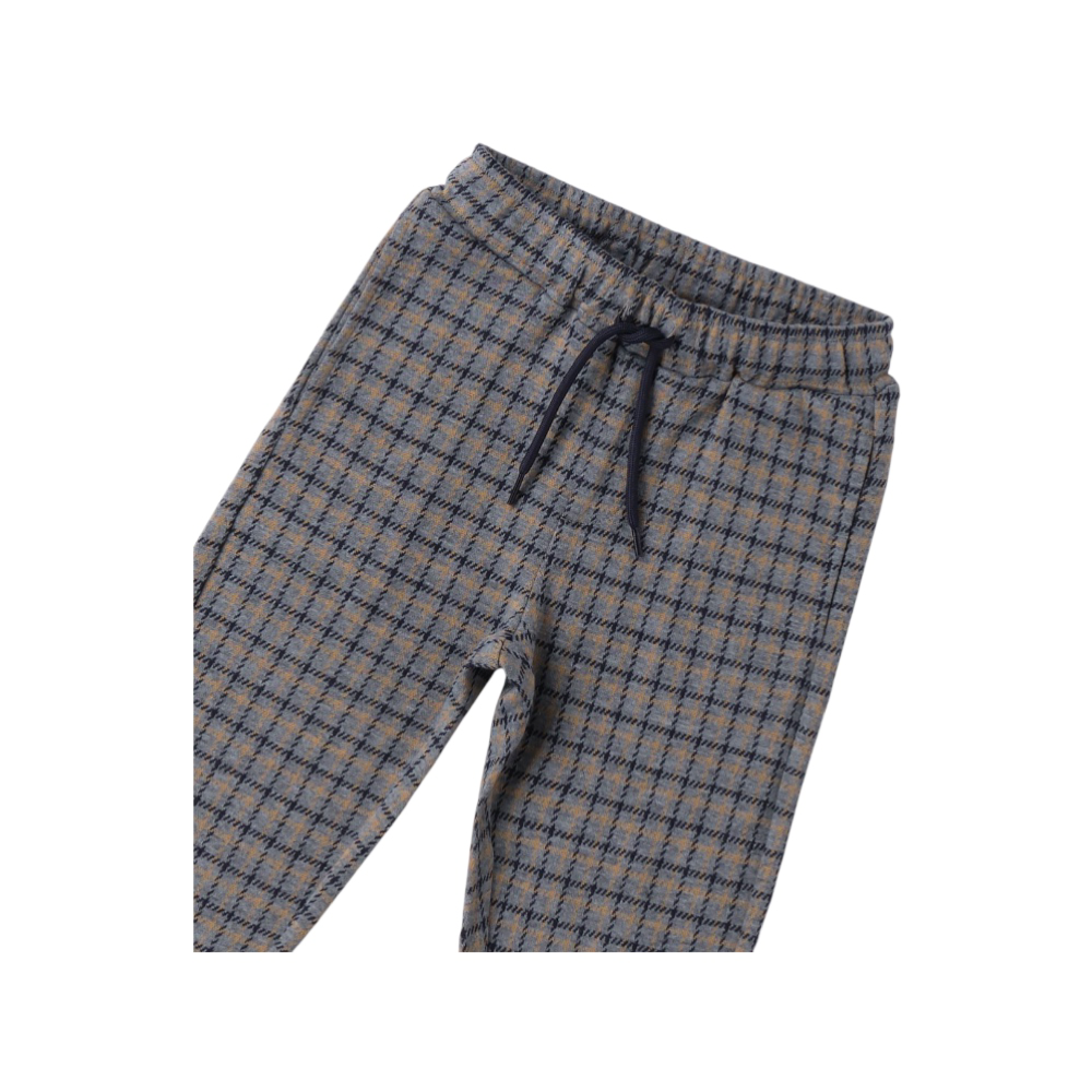 pantaloni bambino a quadri in maglia stretch, tutto elastoco in vita con elastico regolabile, tasche anteriori a filo, vestibilità comoda, ref. 4F682