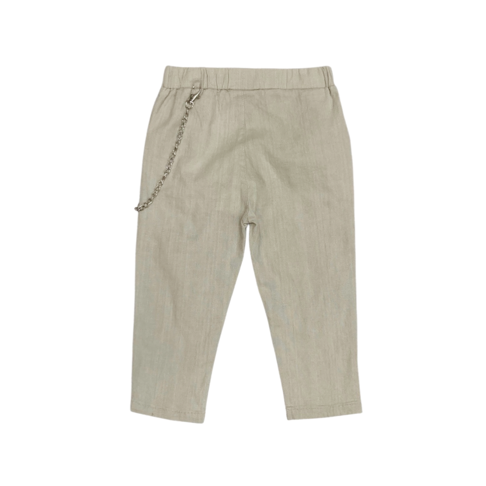 pantaloni baby modello chinos tutto elastico in vita, tasche frontali, gadget staccabile, vestibilità comoda, ref. 5571