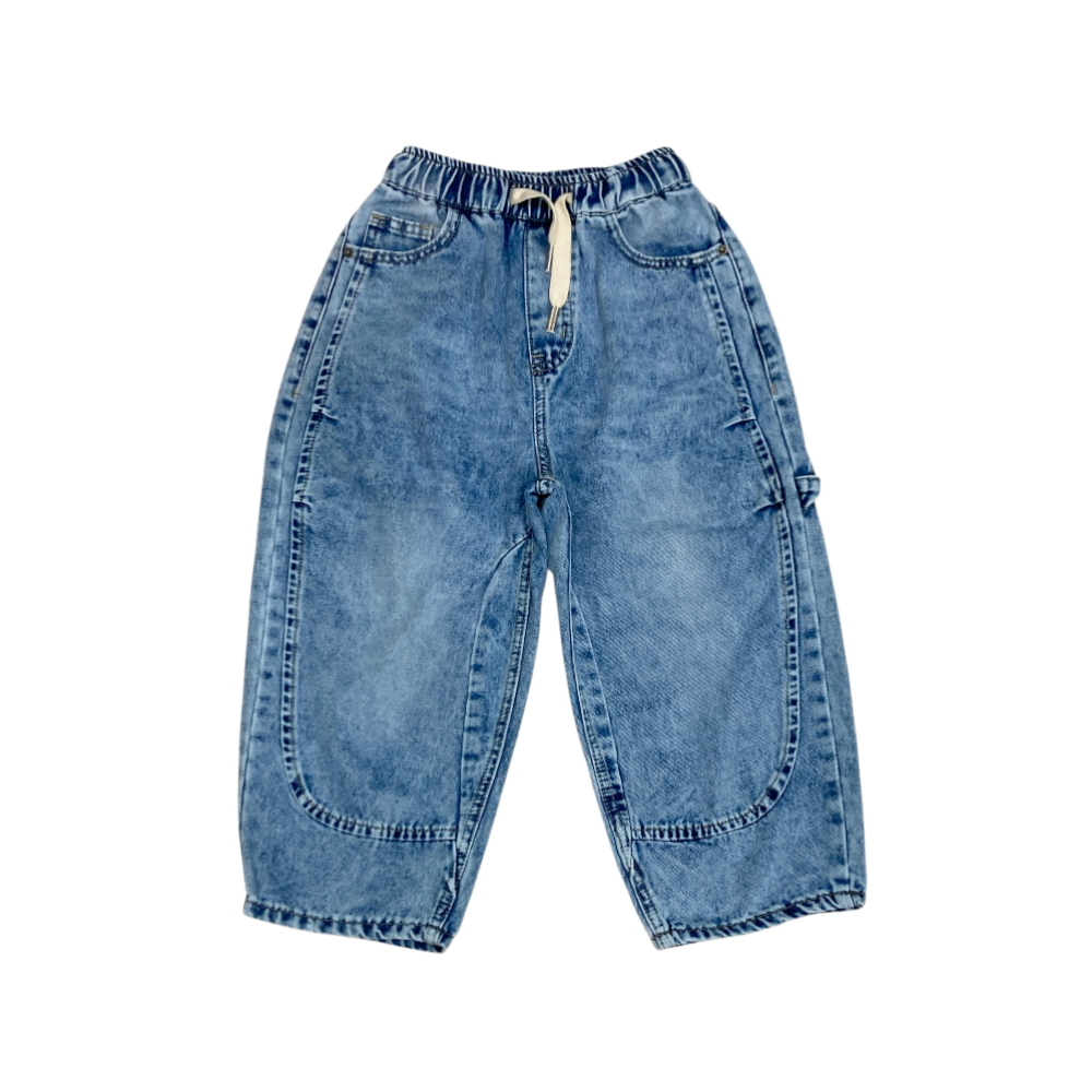 jeans leggero ragazzo modello balloon tutto elastico in vita con coulisse, 5 tasche, stone bleach, ref. AR-7005