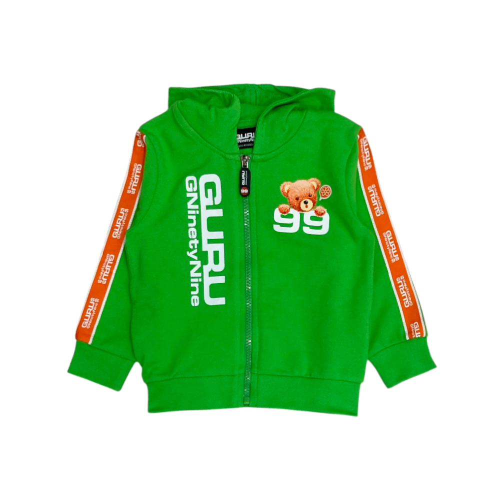 tuta jogging bambino in felpa primaverile, full zip con cappuccio, stampa stampa logo e passamaneria logata alle maniche, panta-tuta con coulisse in vita tasca posteriore banda logata e polsini agli orli, ref. T0009